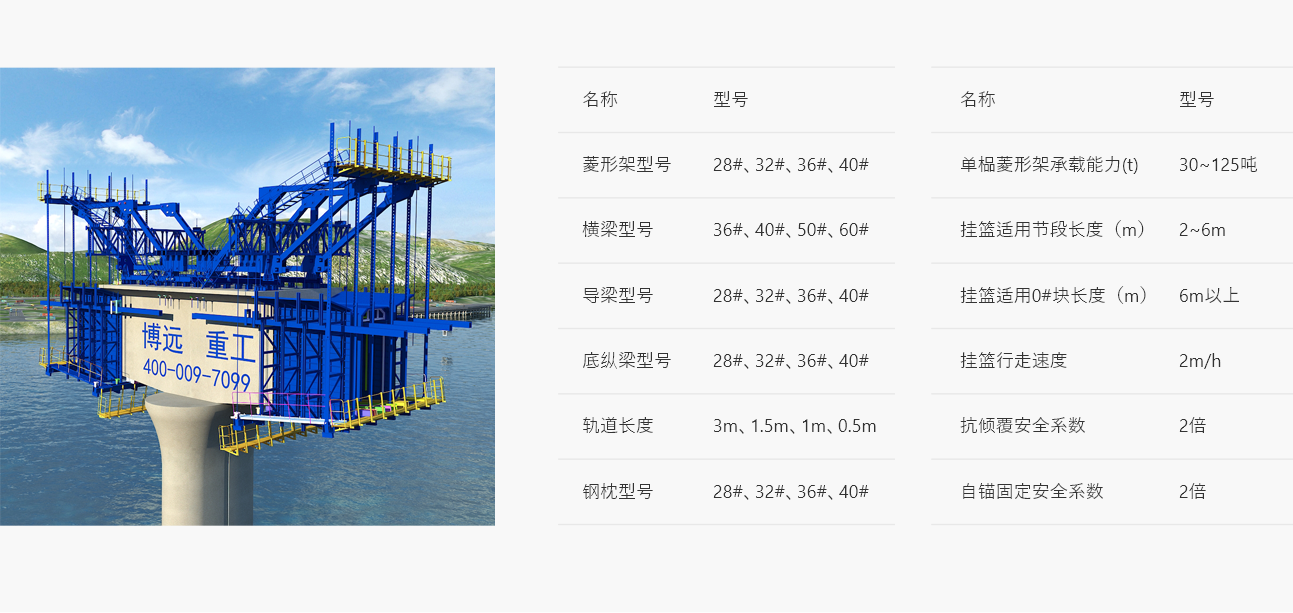 掛籃模版系統(tǒng)是用于連續(xù)懸臂施工的非標機械裝備,博遠掛籃多年來致力于掛籃的標準化和通用性研發(fā),目前擁有掛籃設計、制作方面實用新型專利60余項,目前已研發(fā)至第五代,可以提供掛籃銷售、銷售回購、租賃等多種合作形式,為客戶提供路橋裝備施工整體化解決方案。