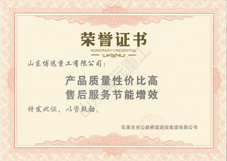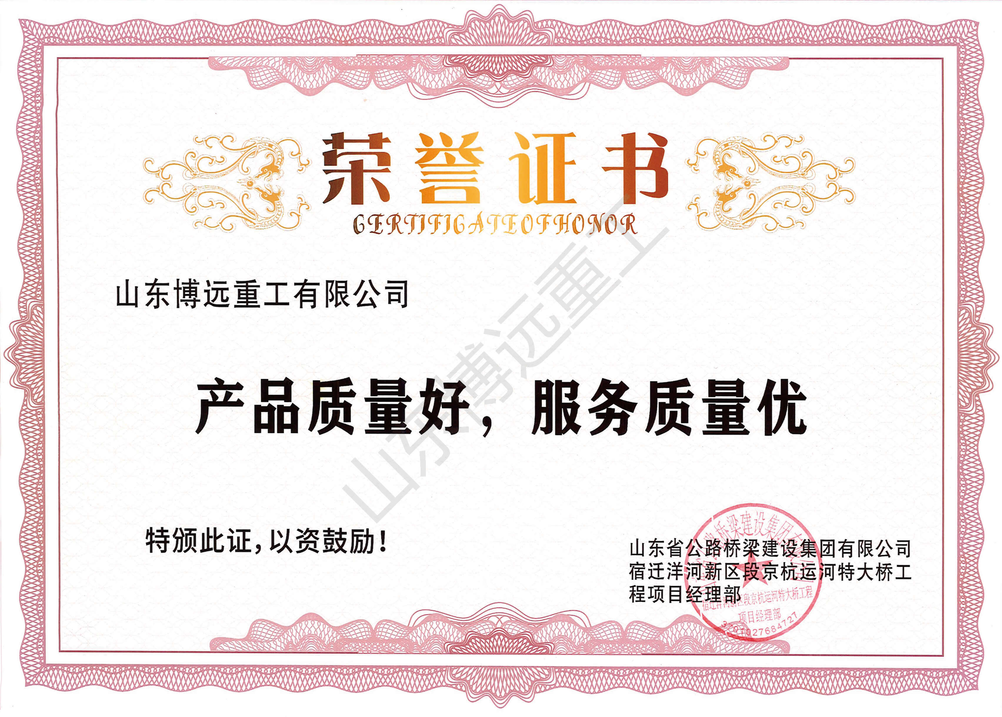濟高高速小清河異步掛籃榮譽證書