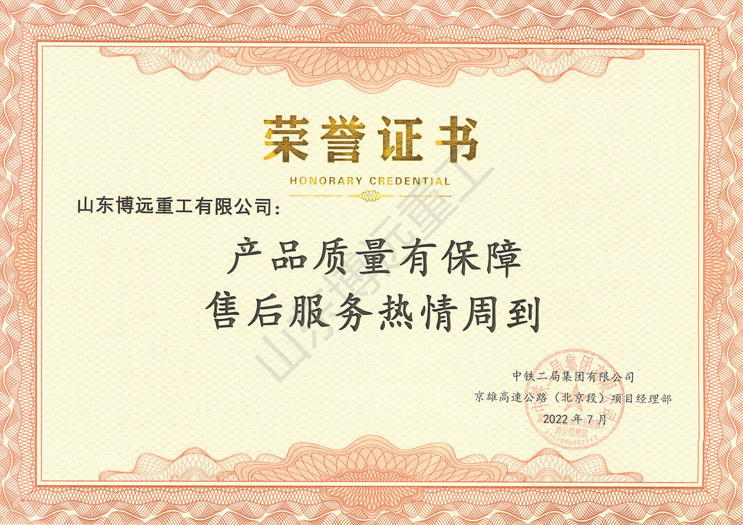 四川濰青榮譽證書